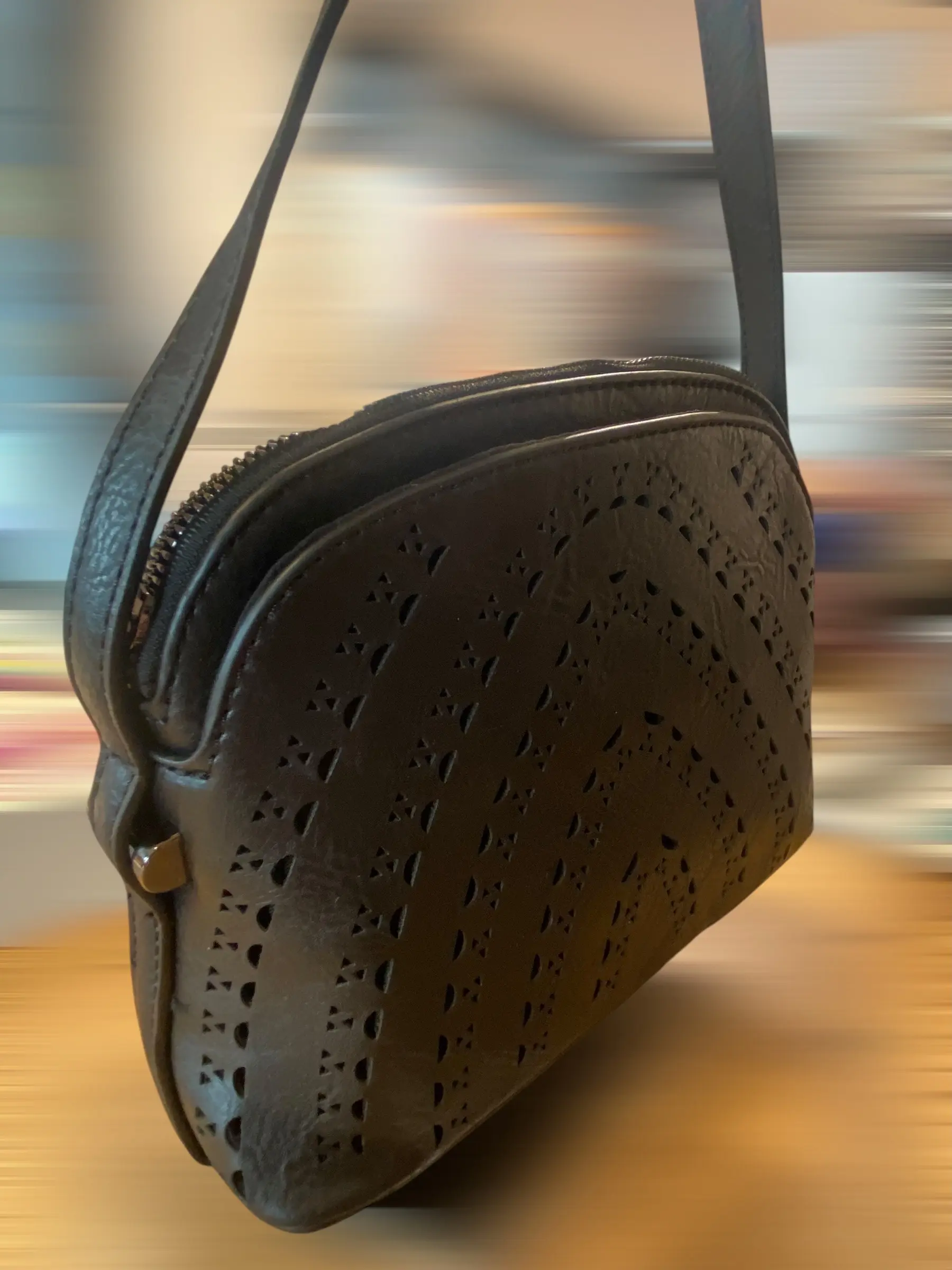 Borsa con tracolla, chiusura con cerniera, intaglio frontale. Color: black.