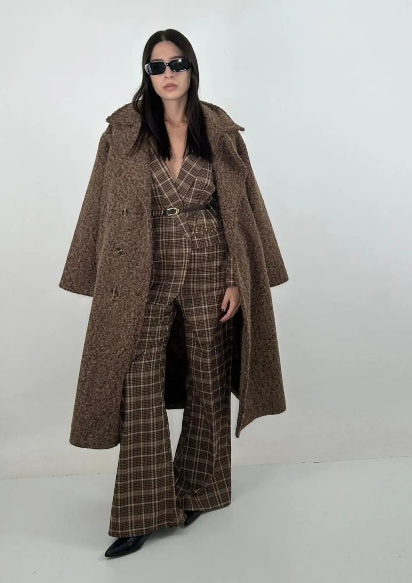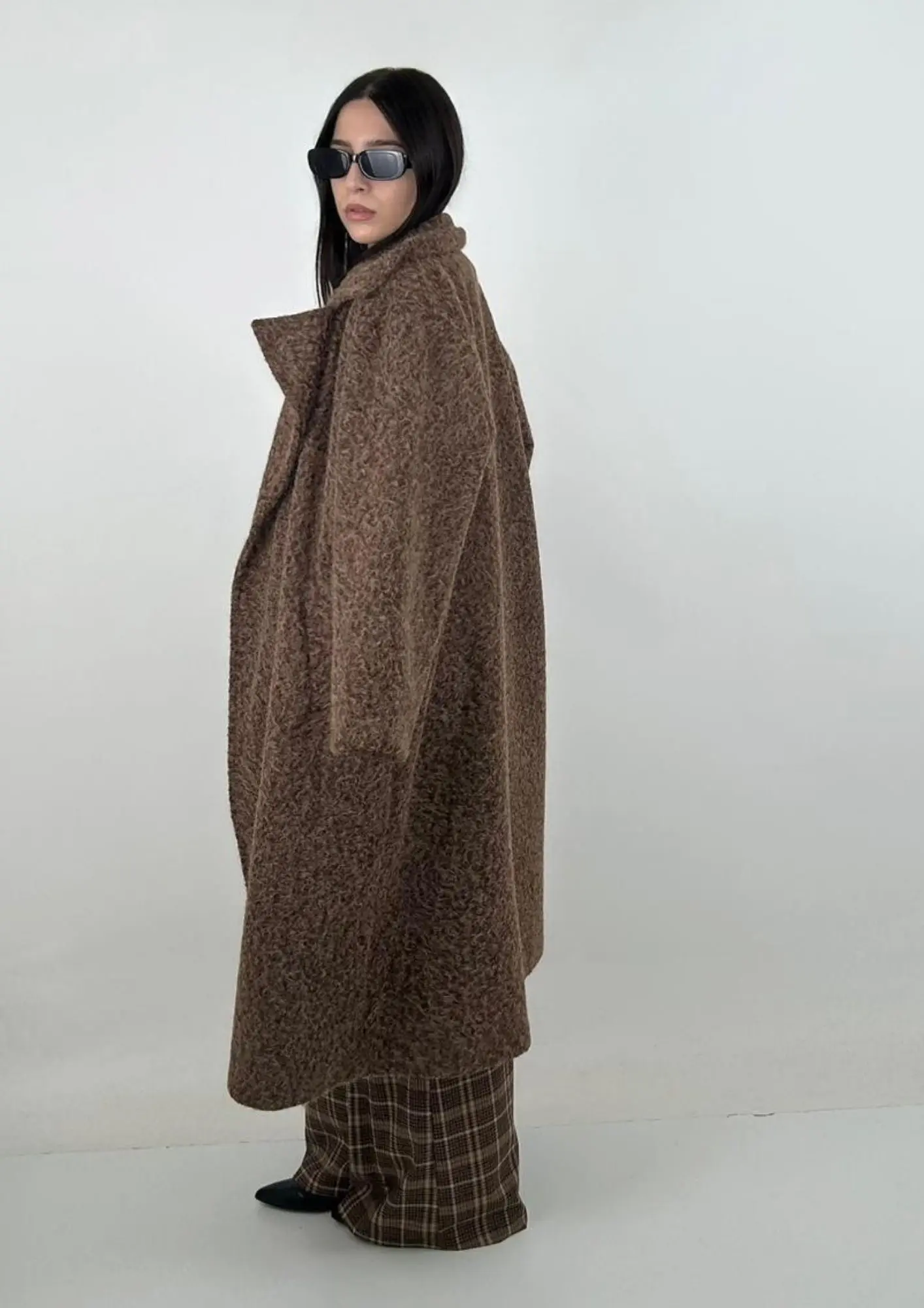 Bellissimo cappotto con taglio oversize, must have sia nella forma che nel colore caffè. Prodotto in Italia si presenta completamente foderato nella parte interna e completo di tasche oblique. In lana cotta è perfetto per il tuo autunno inverno alla moda.