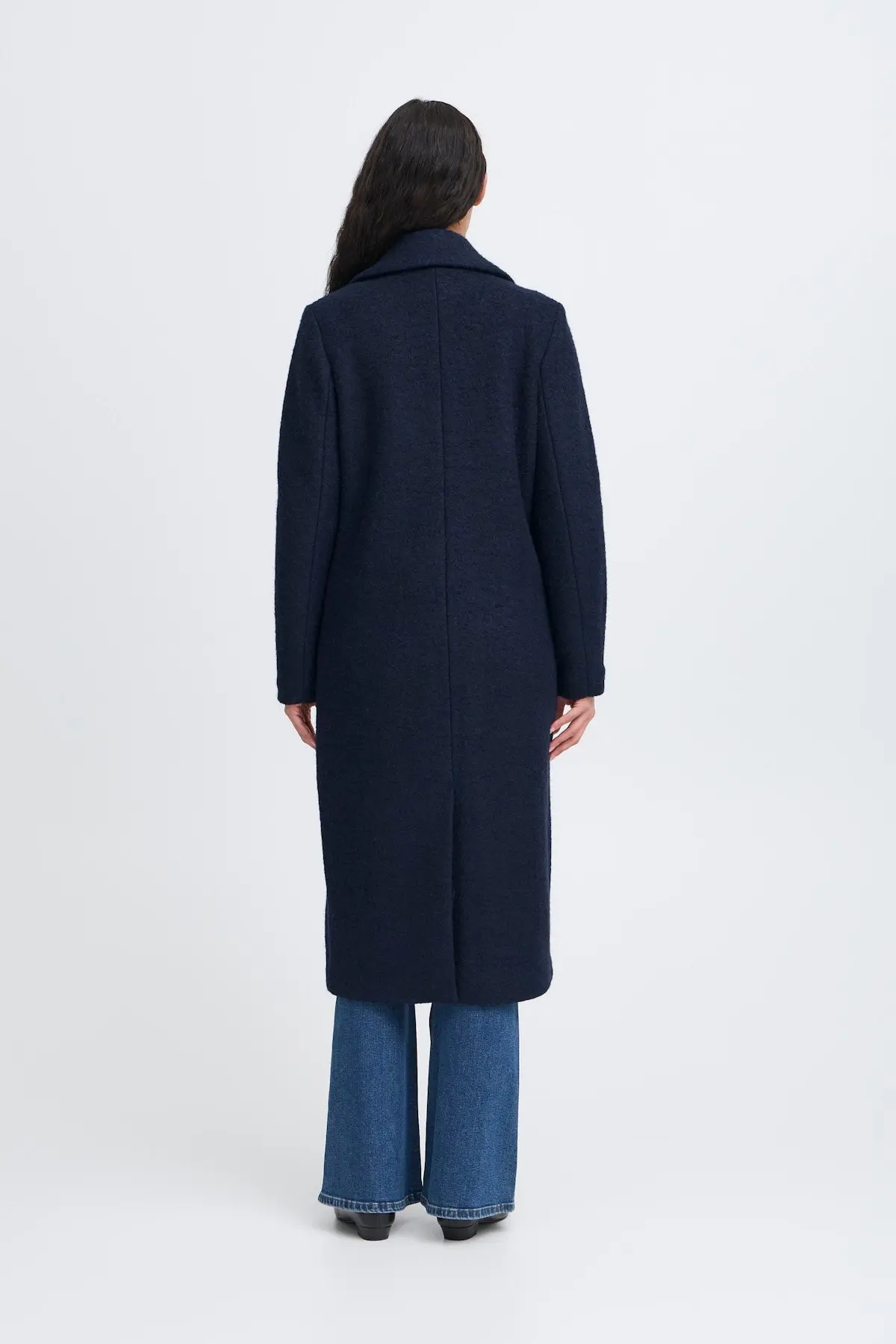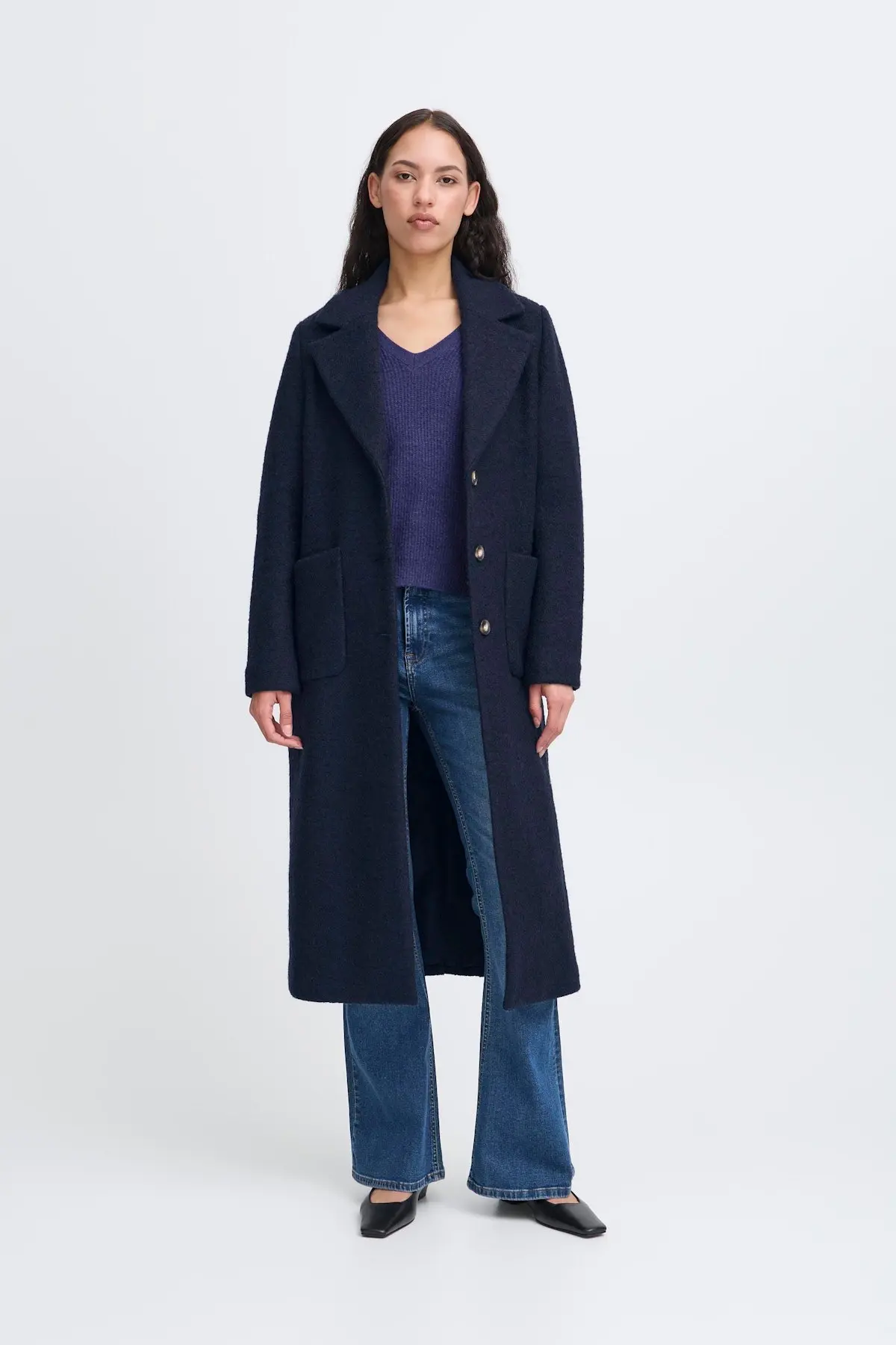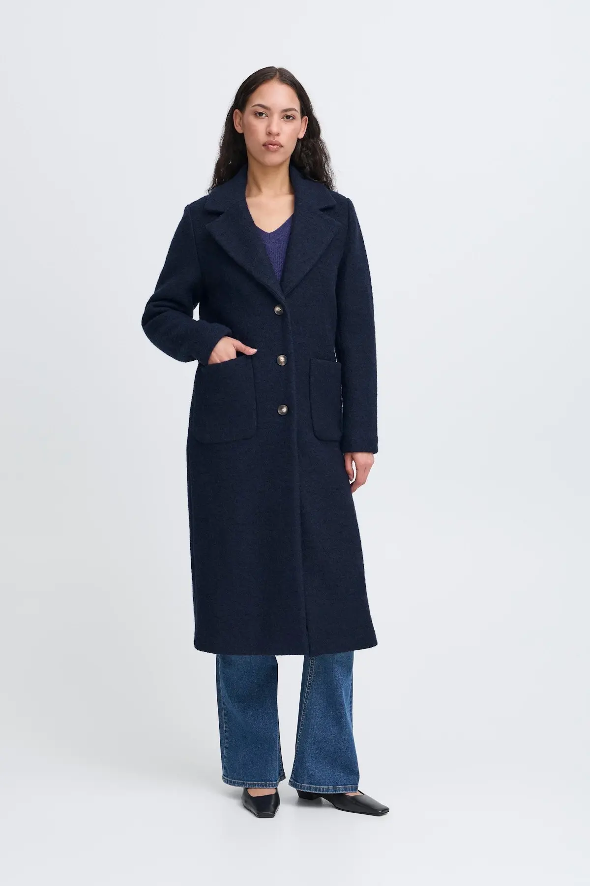 Stupendo cappotto in 50% lana , lungo, taglio classico , vestibilità regolare, BLUE NAVY