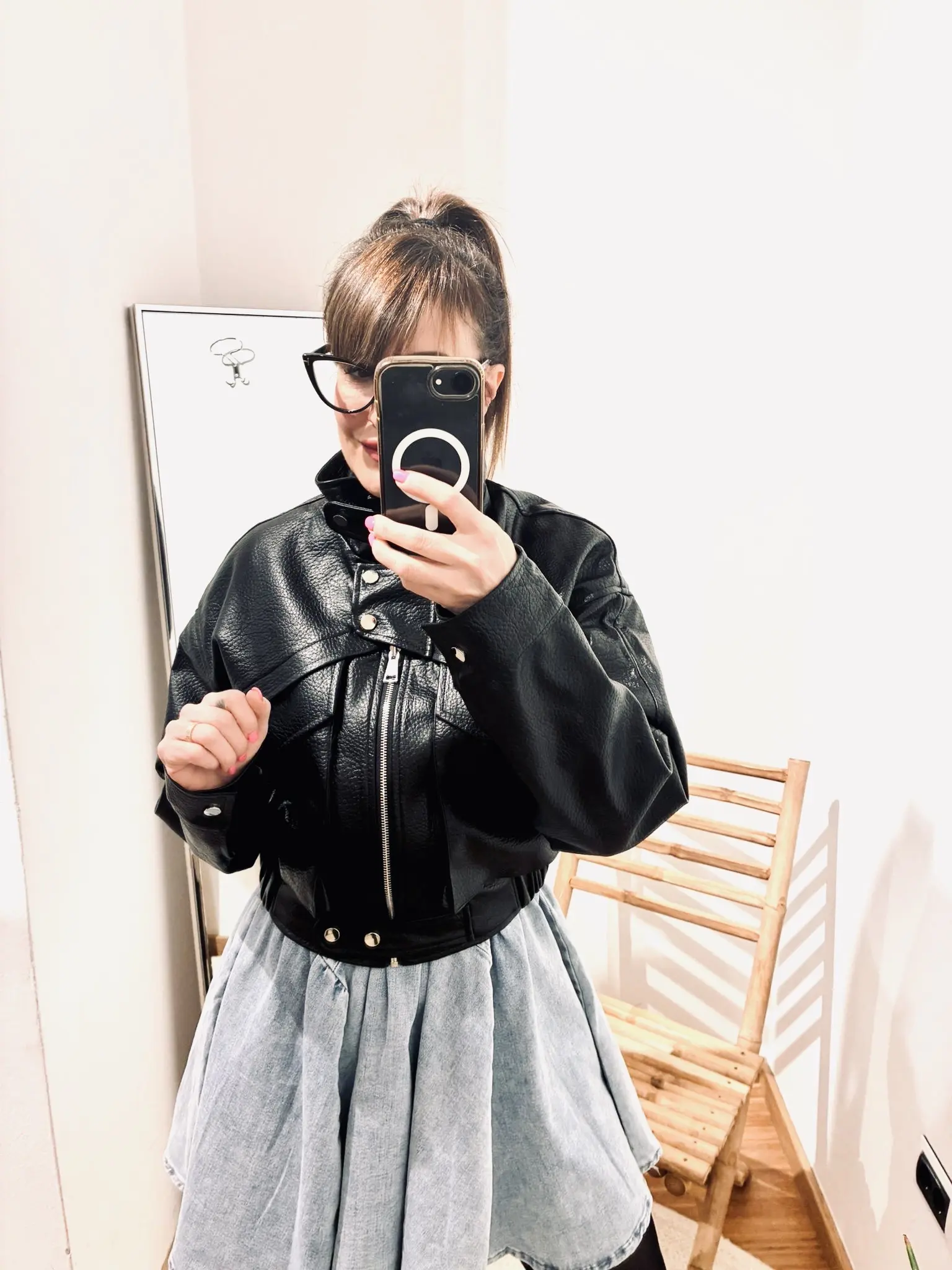 Morbido crop chiodo in ecopelle , super di tendenza , perfetto sopra ogni look