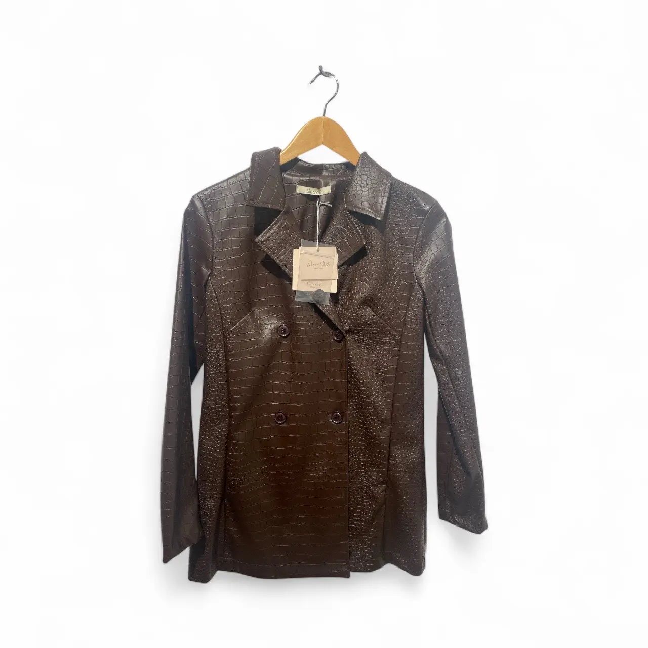 Meravigliosa giacca in ecopelle marrone effetto coccodrillo, vestibilità sciancrata