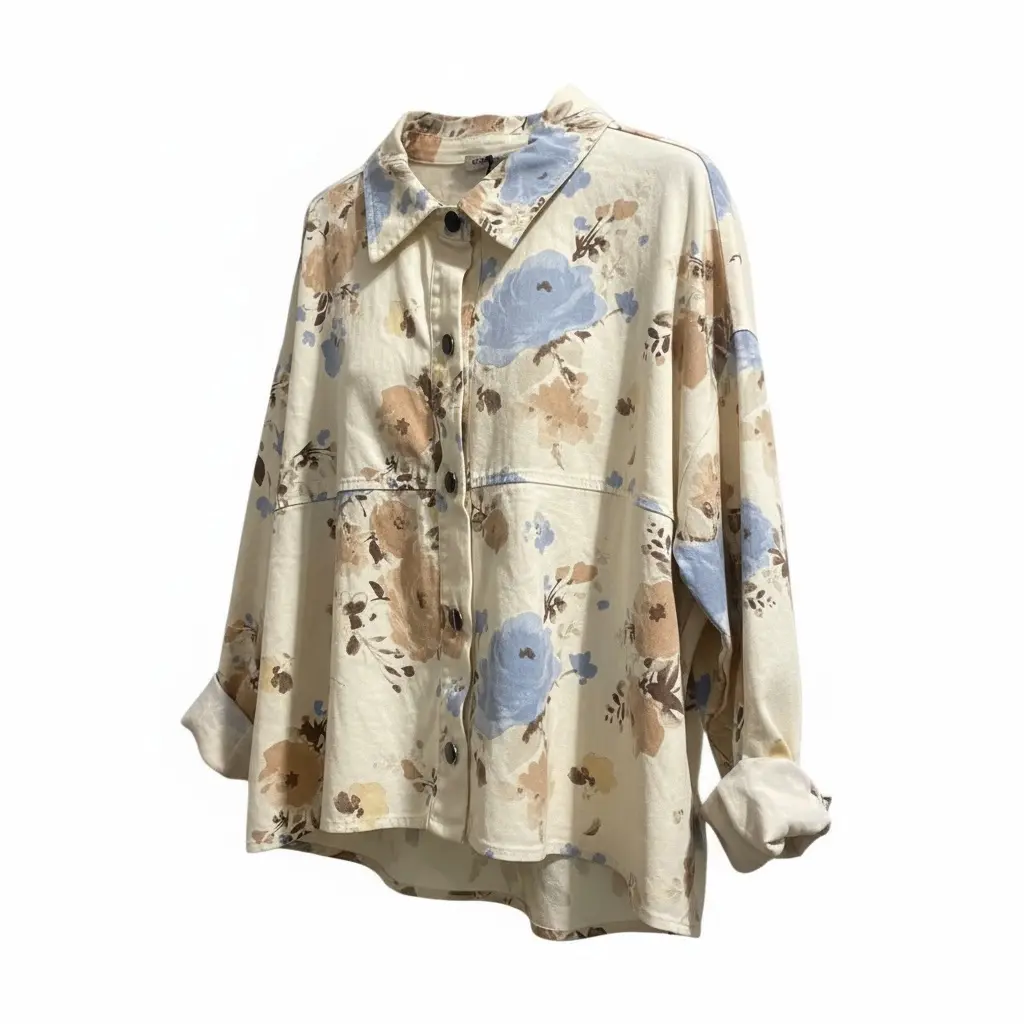 Bellissima giacca in cotone leggero a fantasia floreale, taglio over, chiusura bottoni