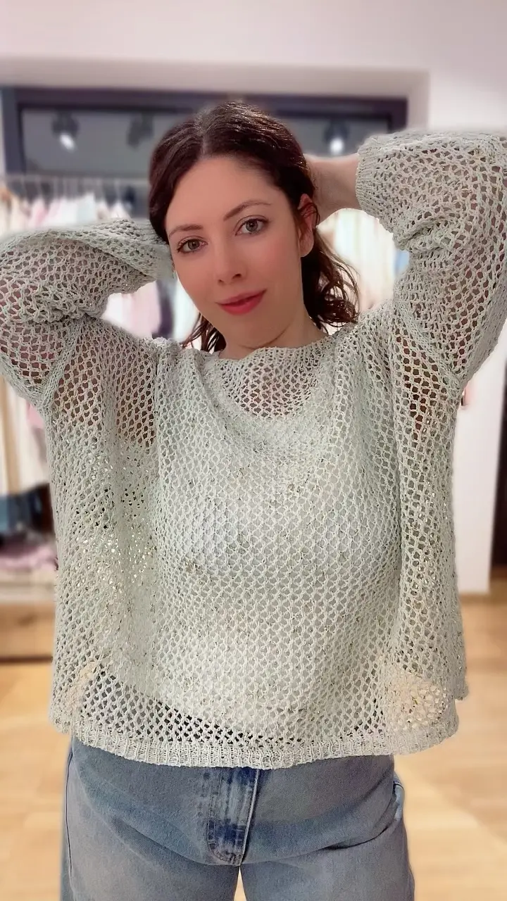 Bellissima maglia a rete in lurex, taglia unica over 50