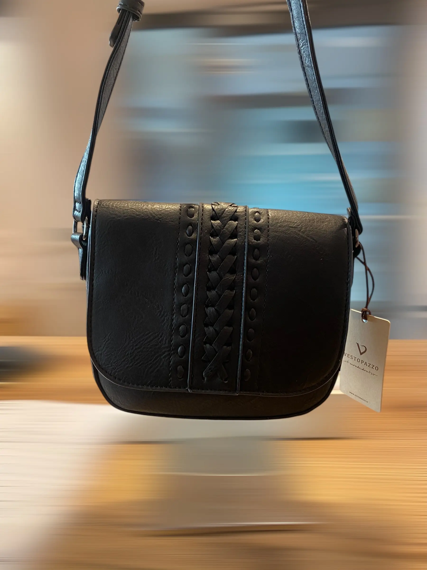 Borsa con tracolla, chiusura con cerniera. Colore: black