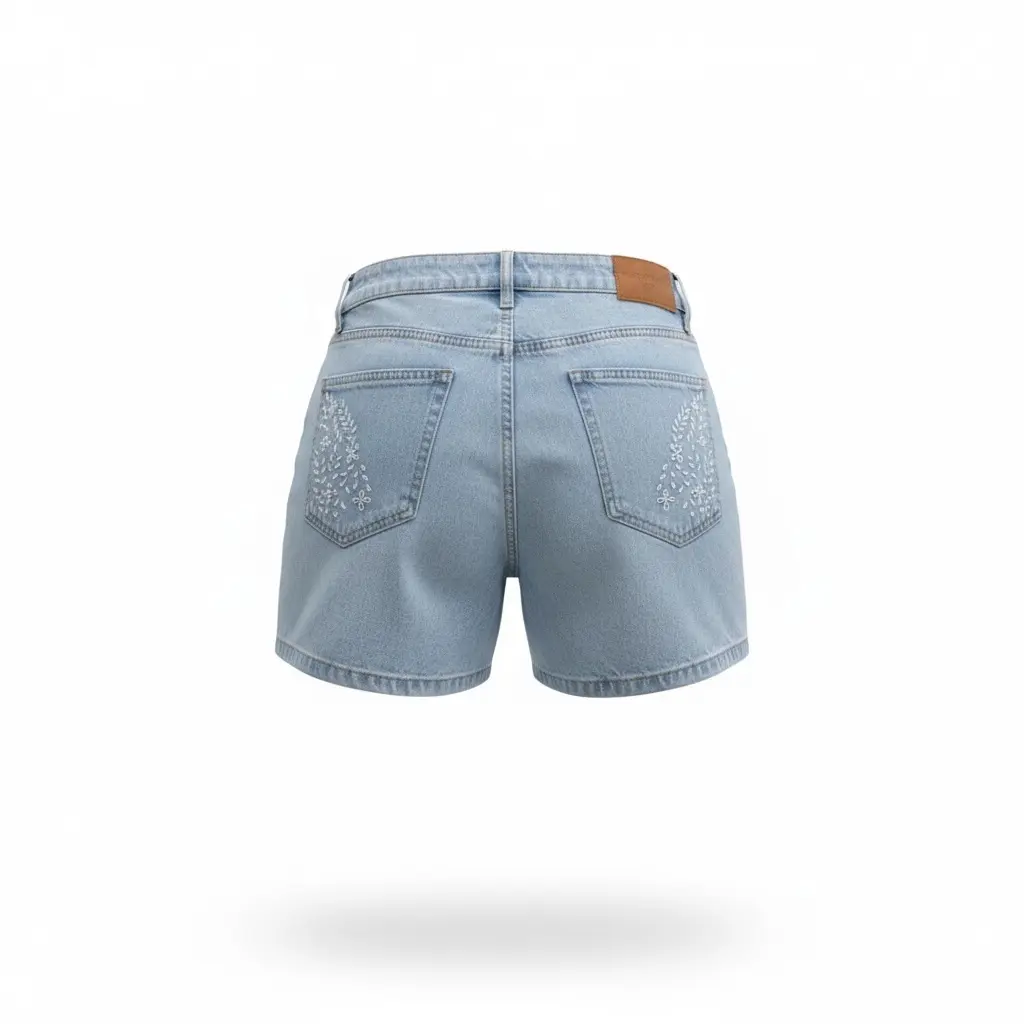 Shorts di jeans fermo con bellissimo ricamo sulle tasche posteriori