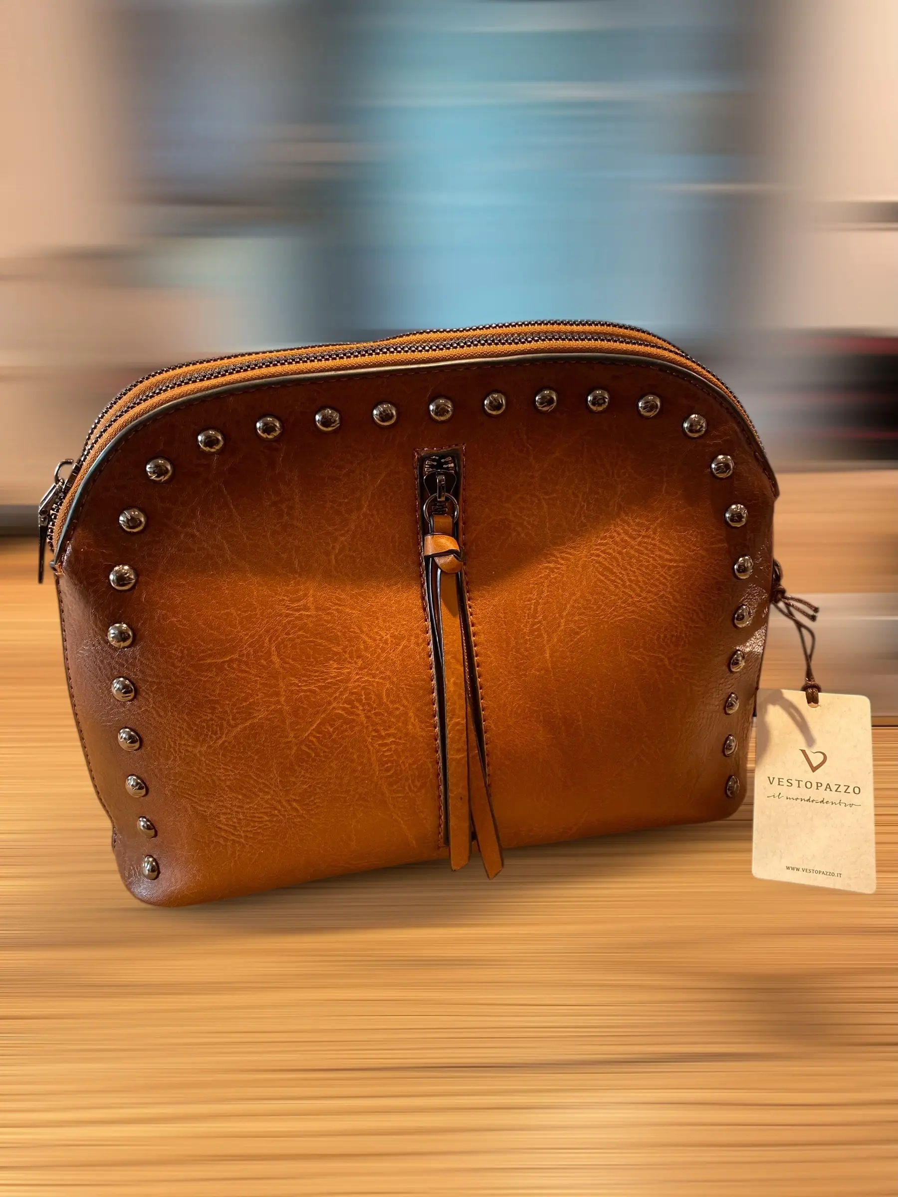 Borsa tracolla doppio scomparto, chiusura con cerniera. Color: camel