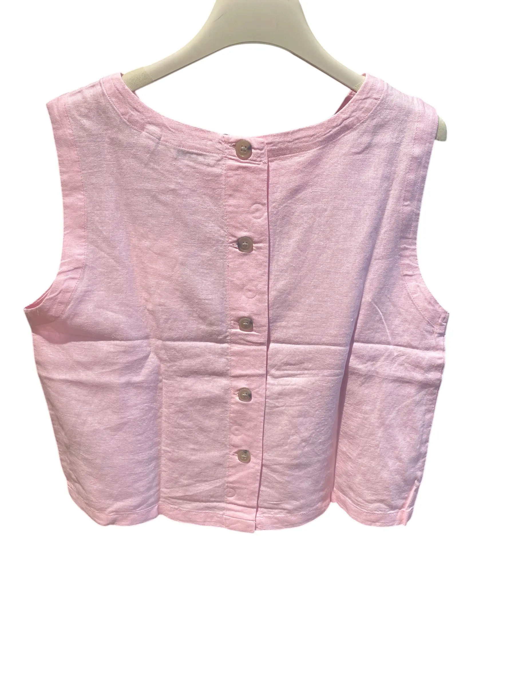 Top in misto lino e viscosa, abbottonatura sul retro, vestibilità comoda, consigliamo una taglia più piccola